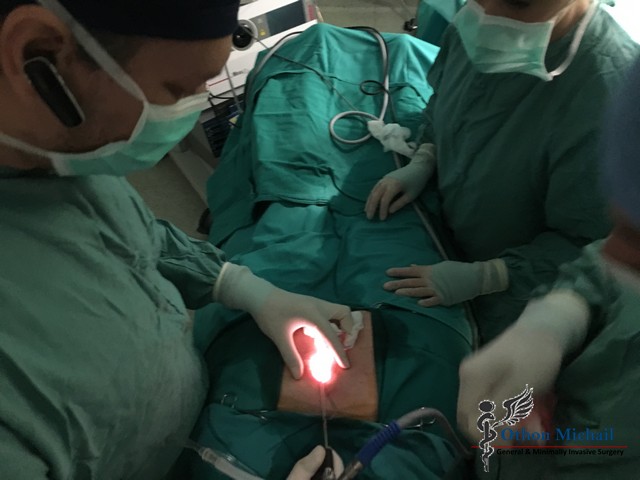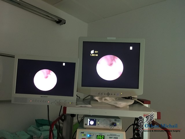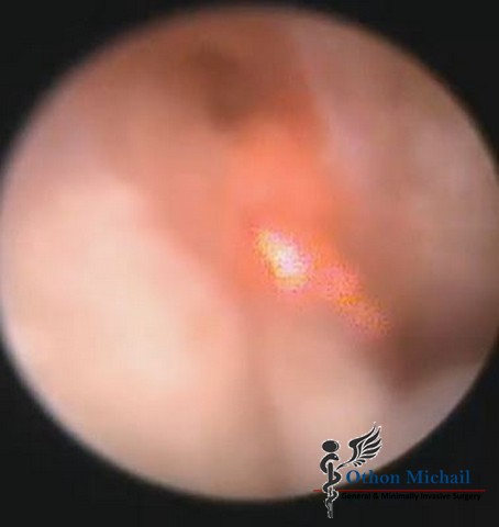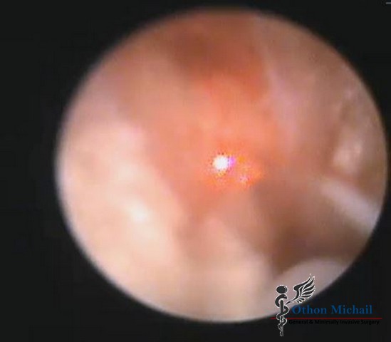 Ανώδυνη ενδοσκοπική θεραπεία κύστης κόκκυγος - Διαγνωστική και θεραπευτική φάση