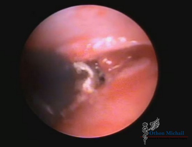 Ενδοσκοπική θεραπεία κύστης κόκκυγα - Θεραπευτική φάση καταστροφής της κύστης και των συριγγίων